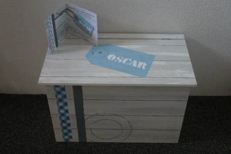 uniek kraamcadeau in de vorm van een handgeschilderde geboortebox