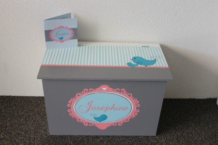 uniek kraamcadeau in de vorm van een handgeschilderde geboortebox